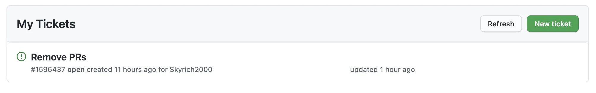 페이지 오른쪽위의 My Tickets 을 눌러서 들어가면, 이렇게 새롭게 문의 티켓이 발급된것을 확인 할 수 있습니다.