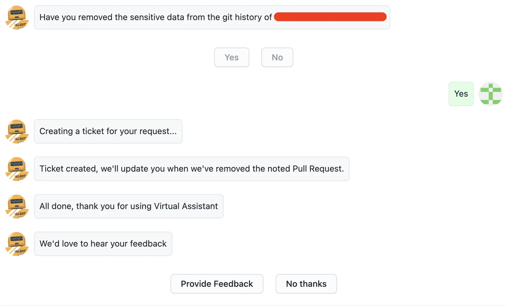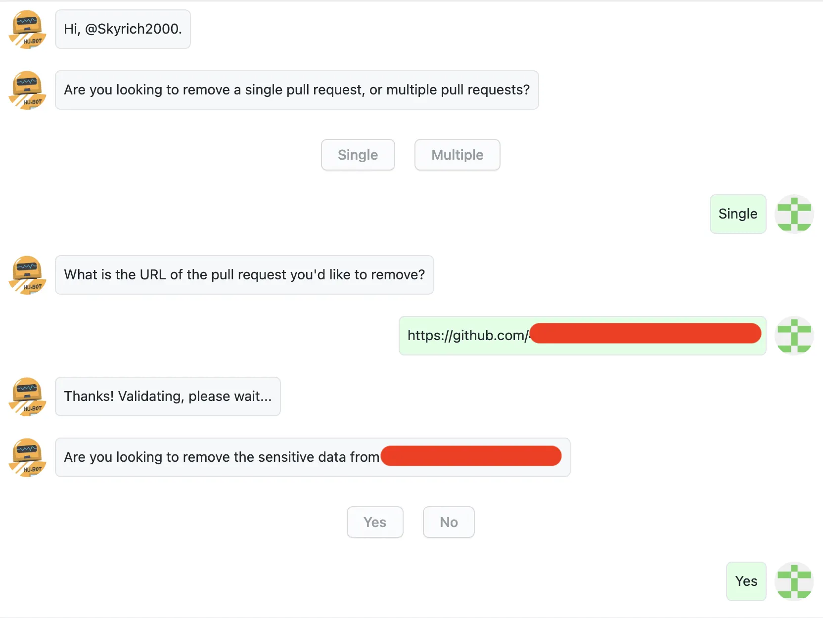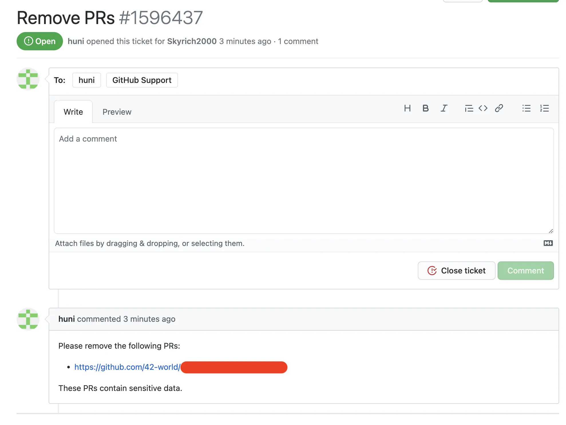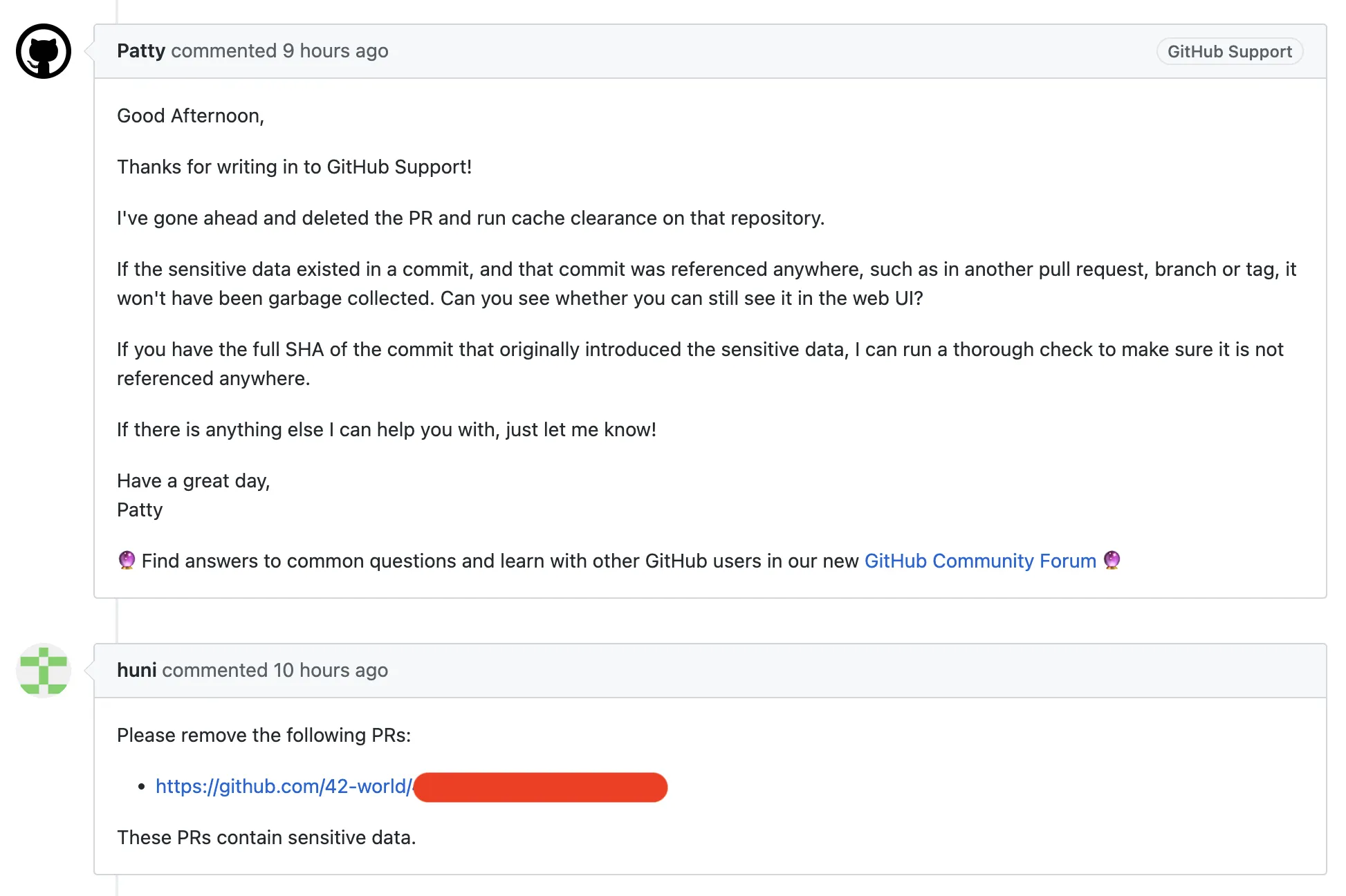 생각보다 응답을 빨리해줘서 놀랐습니다. 덕분에 PR을 잘 지웠습니다.