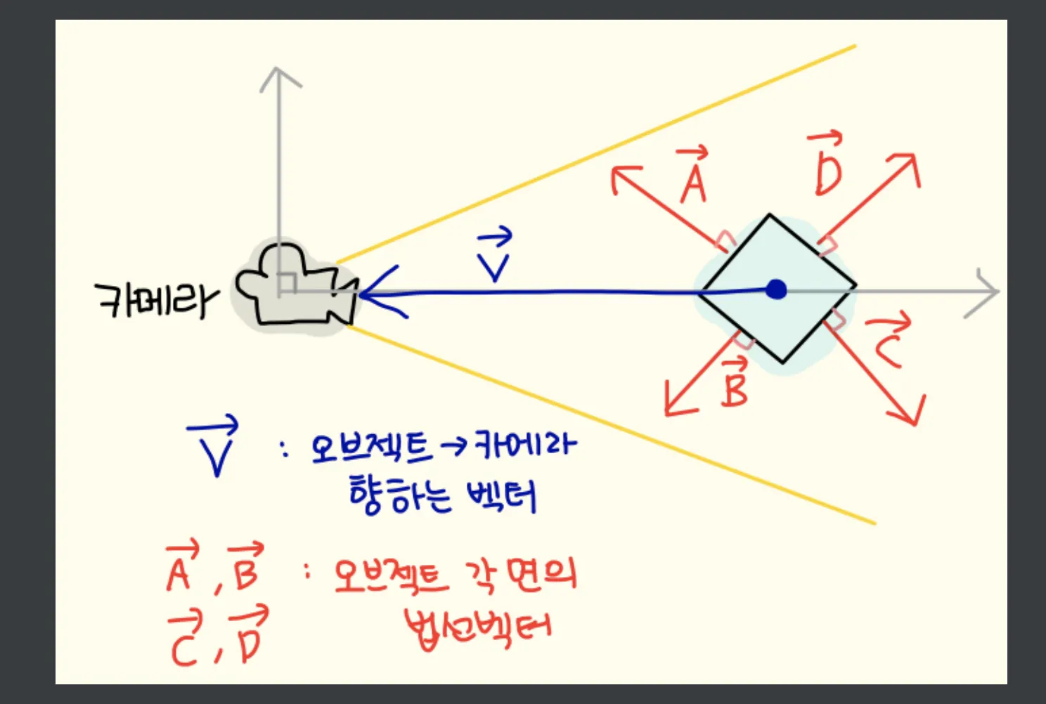 법선 벡터를 사용함으로써 울퉁불퉁한 곡면을 부드럽게 표현, 완벽한 조명 적용 가능 하다고 한다. 또한 우리가 카메라로 특정 물체를 보고싶을 때, 물체의 한 면이 카메라의 시야에 들어오는지 법선벡터를 활용해 알 수 있다!