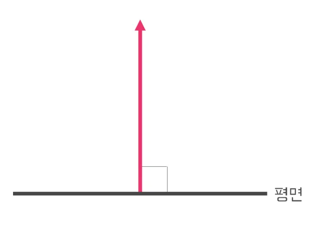 법선벡터는 어떤 표면(평면)에 수직인 뱡항으로 뻗어나가는 벡터이다.