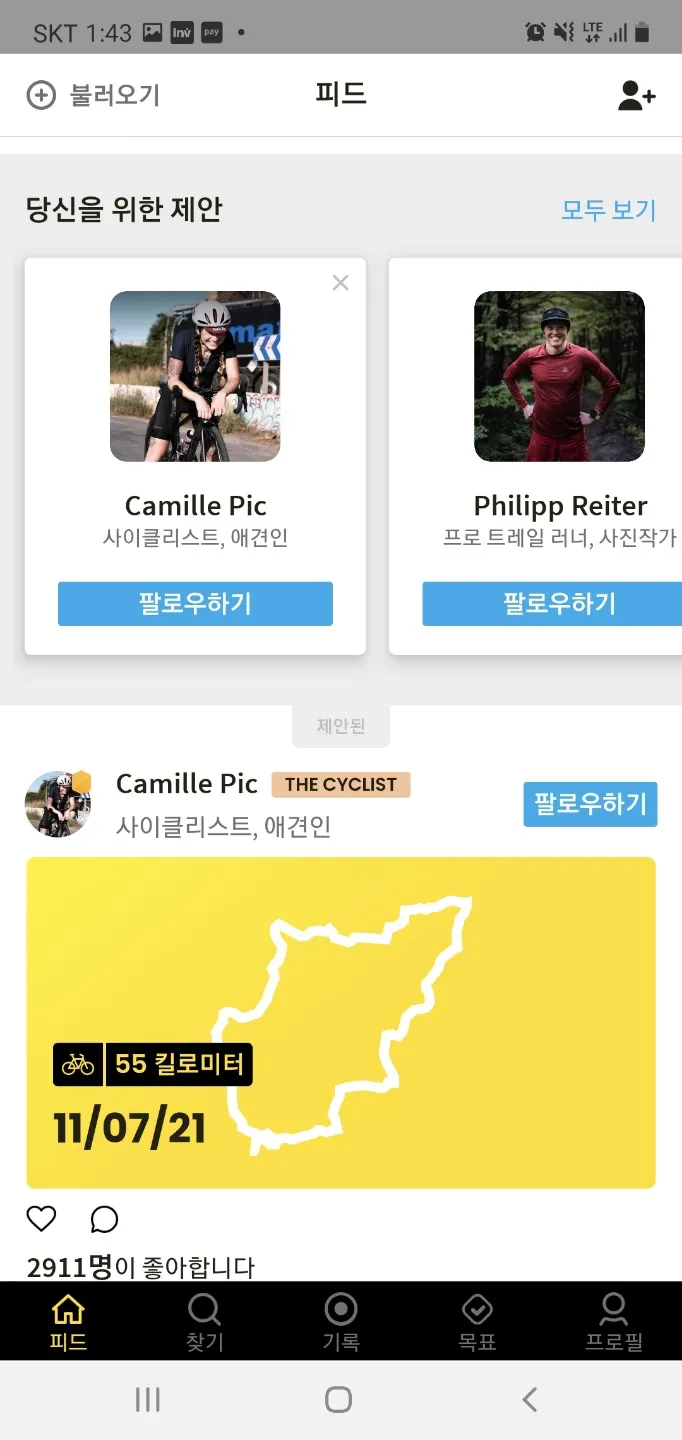 피드에는 러닝 기록들을 올릴 수 있는데 이것이 더 사람 모으는데 좋을듯.