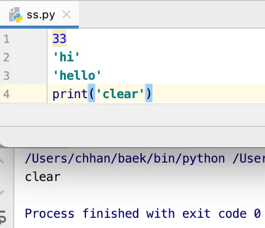 숫자와 ' ' 로 만들어진 string 형태는 인터프리터가 읽는 즉시 메모리로 올라가는 것으로 보입니다. 다음과 같은 코드를 작성 후 run 해도 오류는 발생하지 않습니다.
