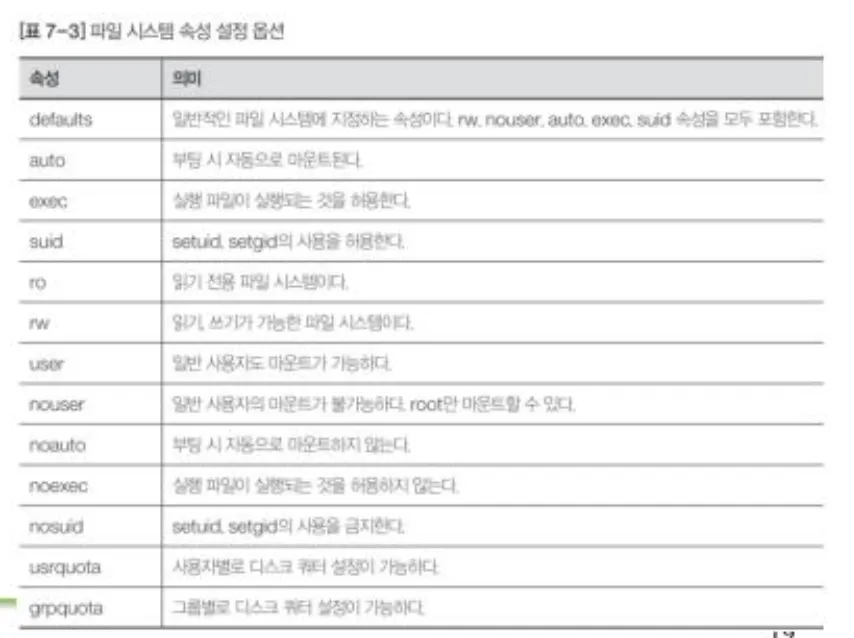 옵션 : 파일 시스템의 옵션을 지정하는 옵션이다