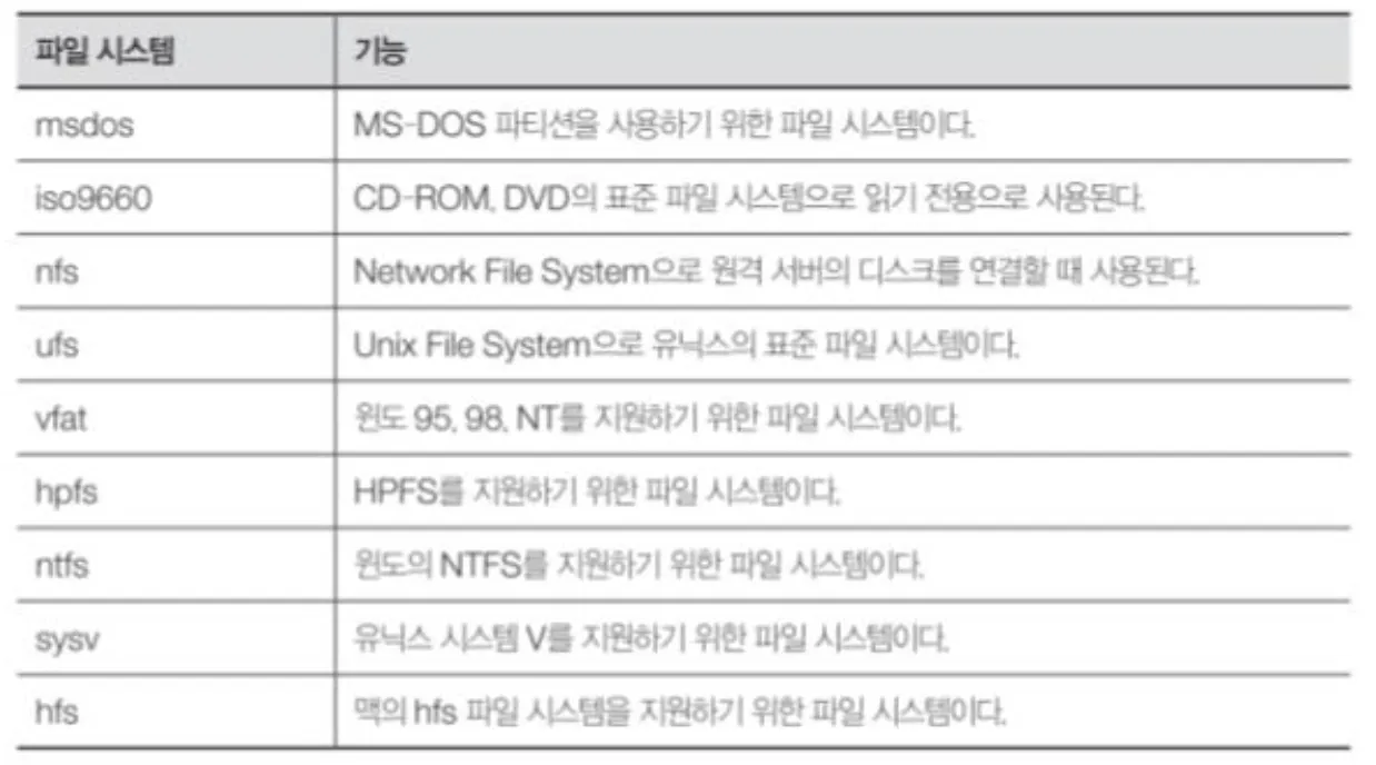 -현재 시스템에서 지원하는 파일 시스템 확인 : cat /proc/filesystems