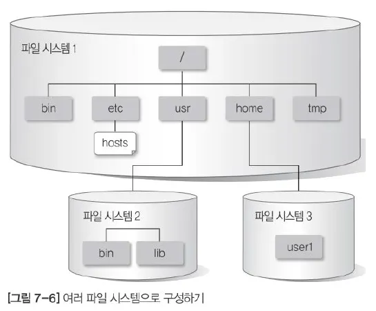 한 파일 시스템으로 구성할 수도 있고 여러 파일 시스템으로 구성할 수도 있다.