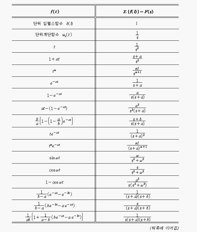 3) 라플라스 변환 표