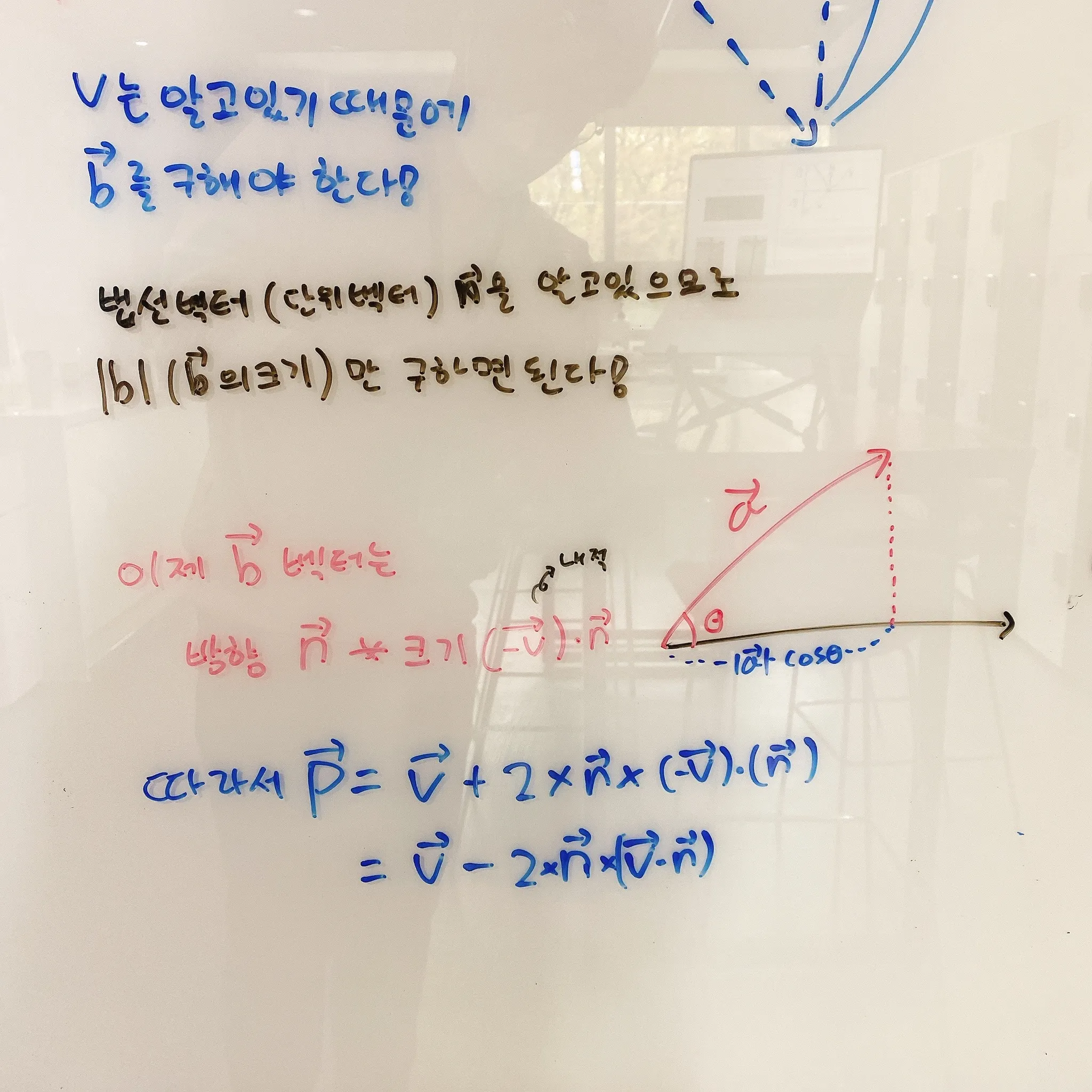 이제 드디어 거울반사되는 벡터를 만들어볼 예정이다. 아래 사진을 보자!