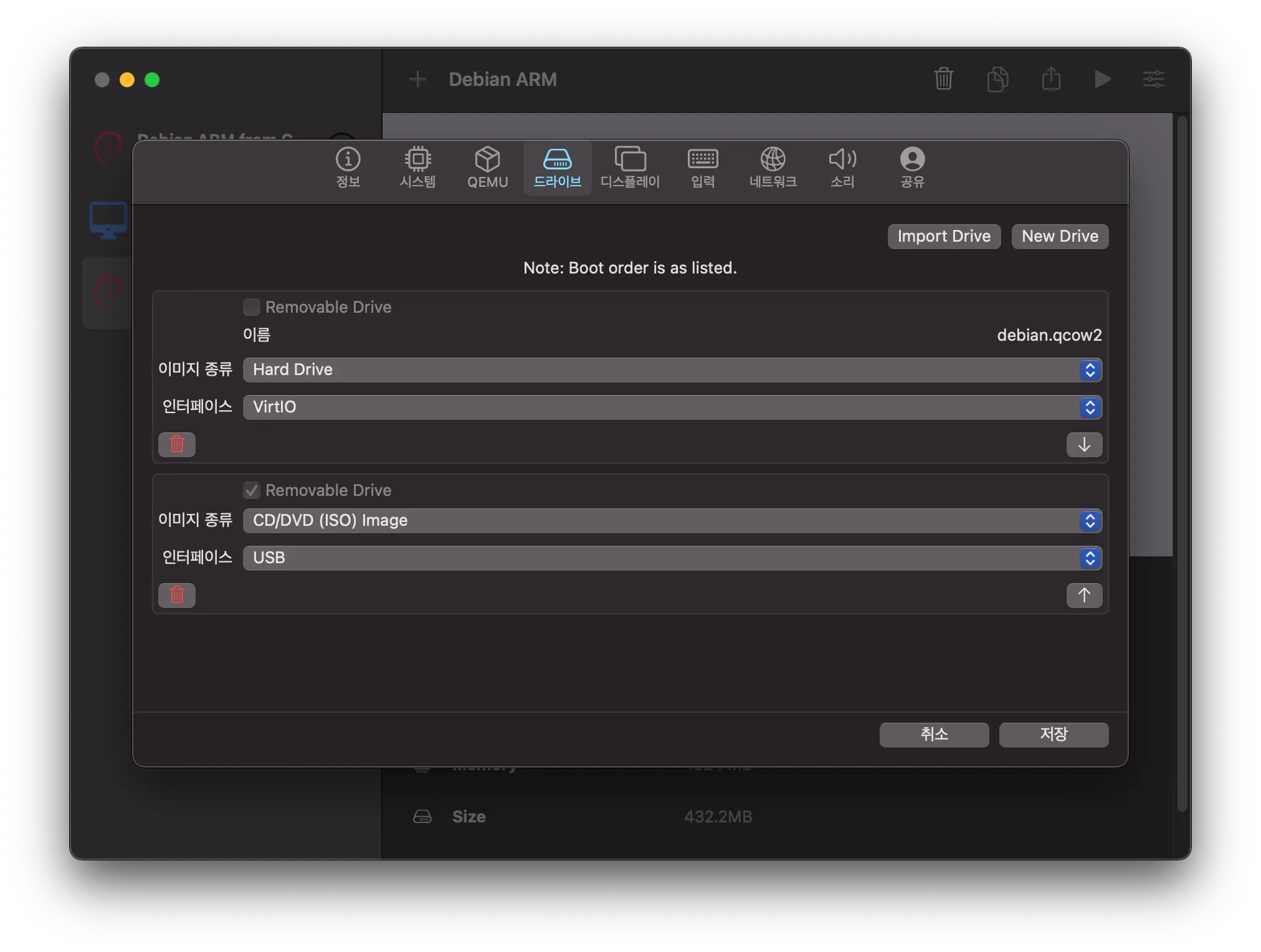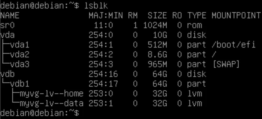 참고로, VirtIO 로 디스크를 등록할 경우, 해당 drive는 /dev/vdX (X는 a부터 순서대로 붙인 특정 알파벳입니다.) 로 연결됩니다.