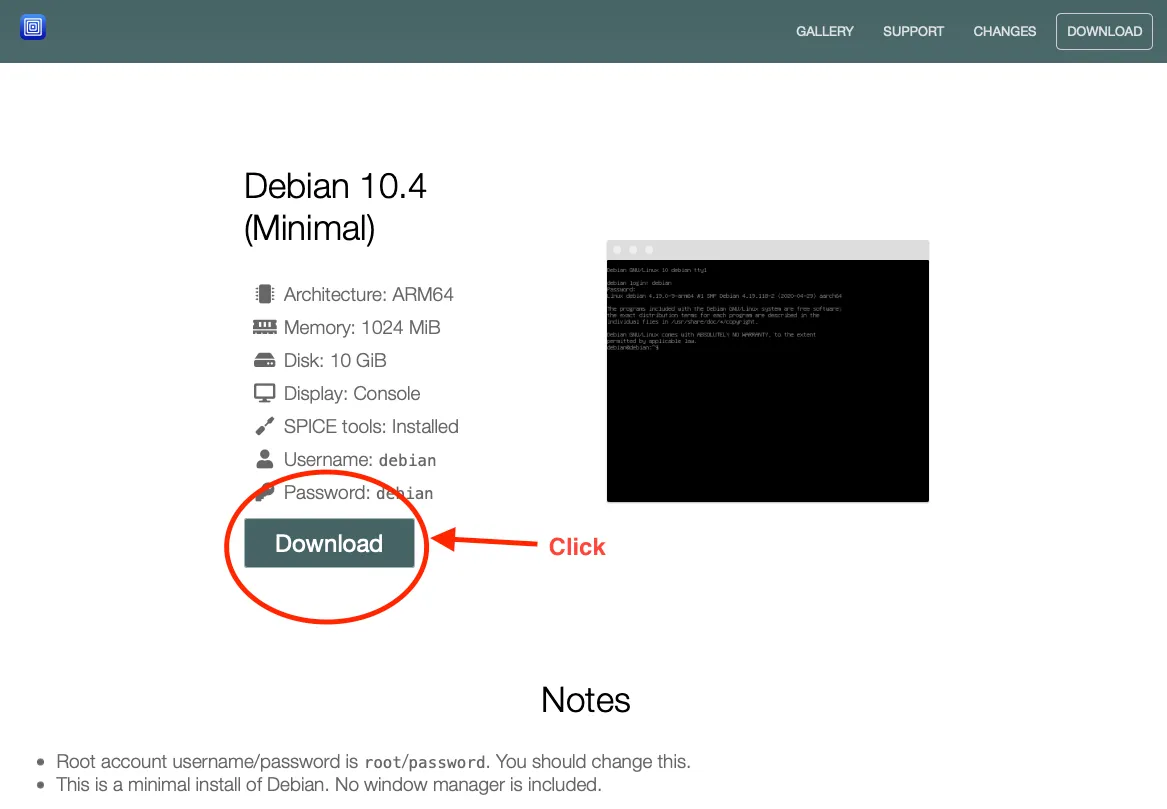 저는 여기서 Debian 10.4, Minimal을 선택하겠습니다.