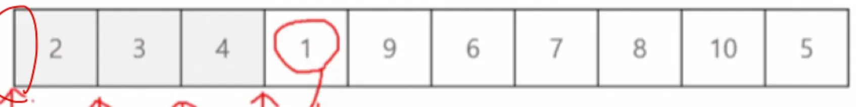 1은 앞의 모든 수보다 작으므로 맨 앞으로 넣는다.