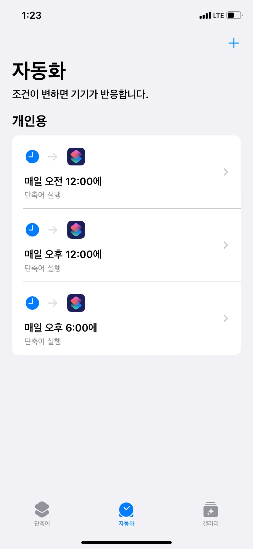 이제 이 단축어를 원하는 시기에 실행할 수 있도록 자동화 설정을 휴대폰에서 해주면 끝이다. 나는 6시간 마다 동작하도록 설정했고, 오전 6시에는 실행되지 않도록 설정했다!