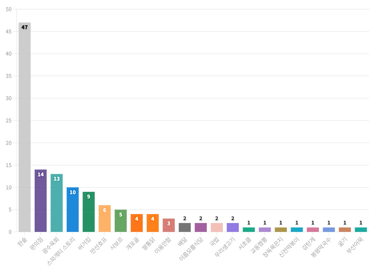 개포 클러스터에서 가장 많이 이용한 음식점은?