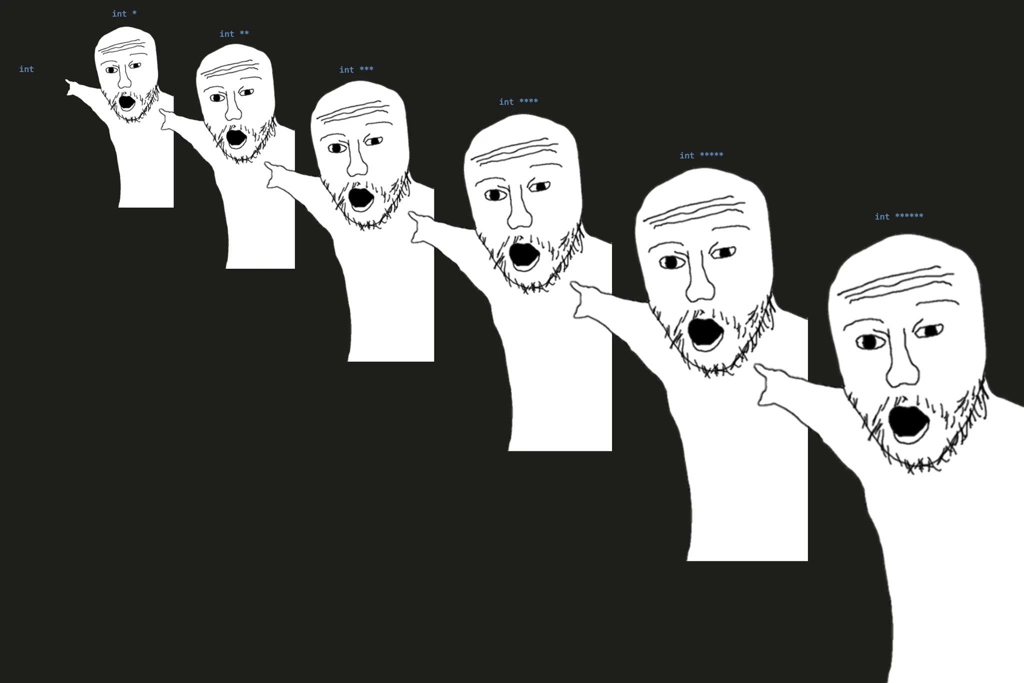 포인터가 하나일 때는 쉽게 쓰지만, *가 점점 늘어갈수록 당황하는 경우가 많다. 그러나 당황할 필요가 전혀 없다. 쉽게 이렇게 이해해보자.