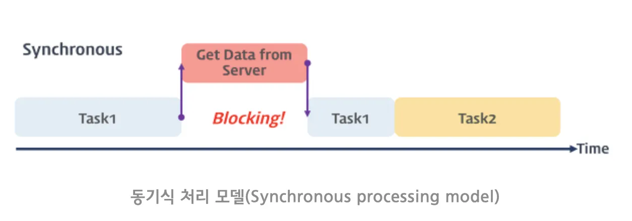 동기식 처리 모델(Synchronous Processing Model)은 직렬적으로 일을 처리한다.