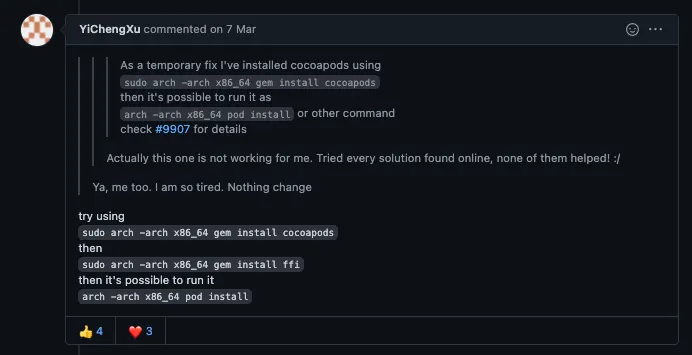 위의 코드를 사용하여 설치를 다시 하고 podfile 을 수정하니 제대로 설치가 되었다.