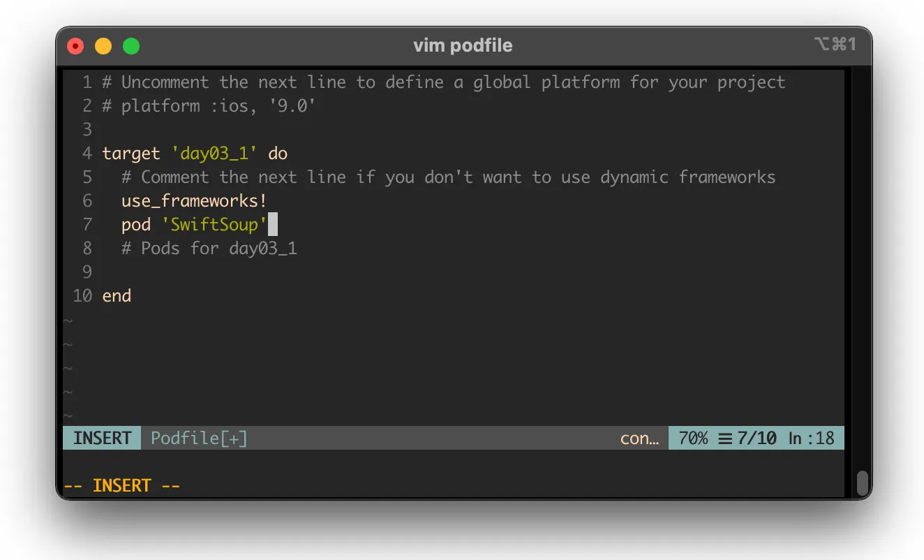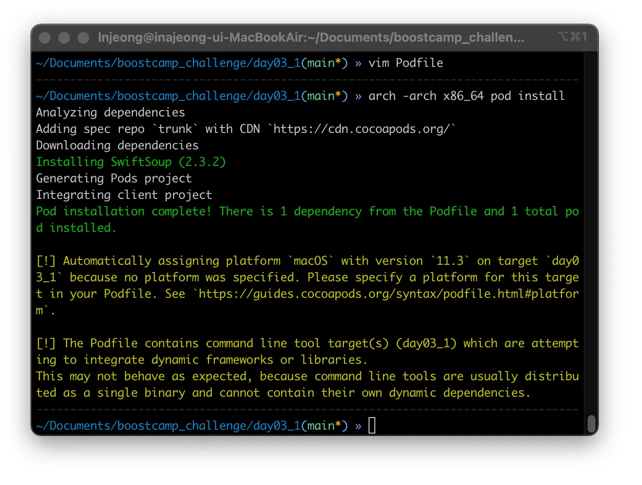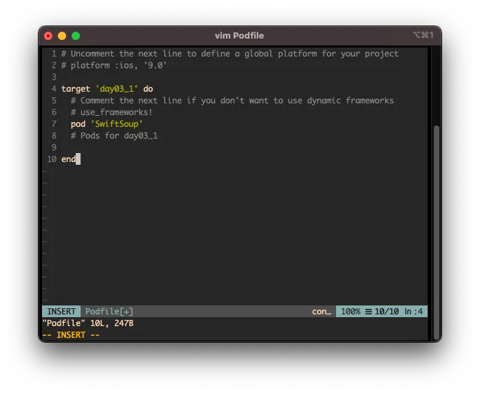 이제 podfile을 수정하여 SwiftSoup를 설치해보자