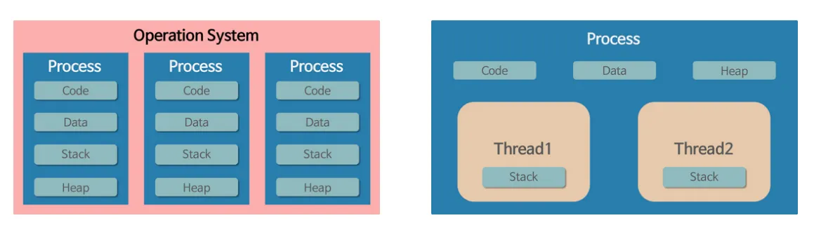 Stack 영역만 따로 할당 받고 나머지 영역은 서로 공유한다.
