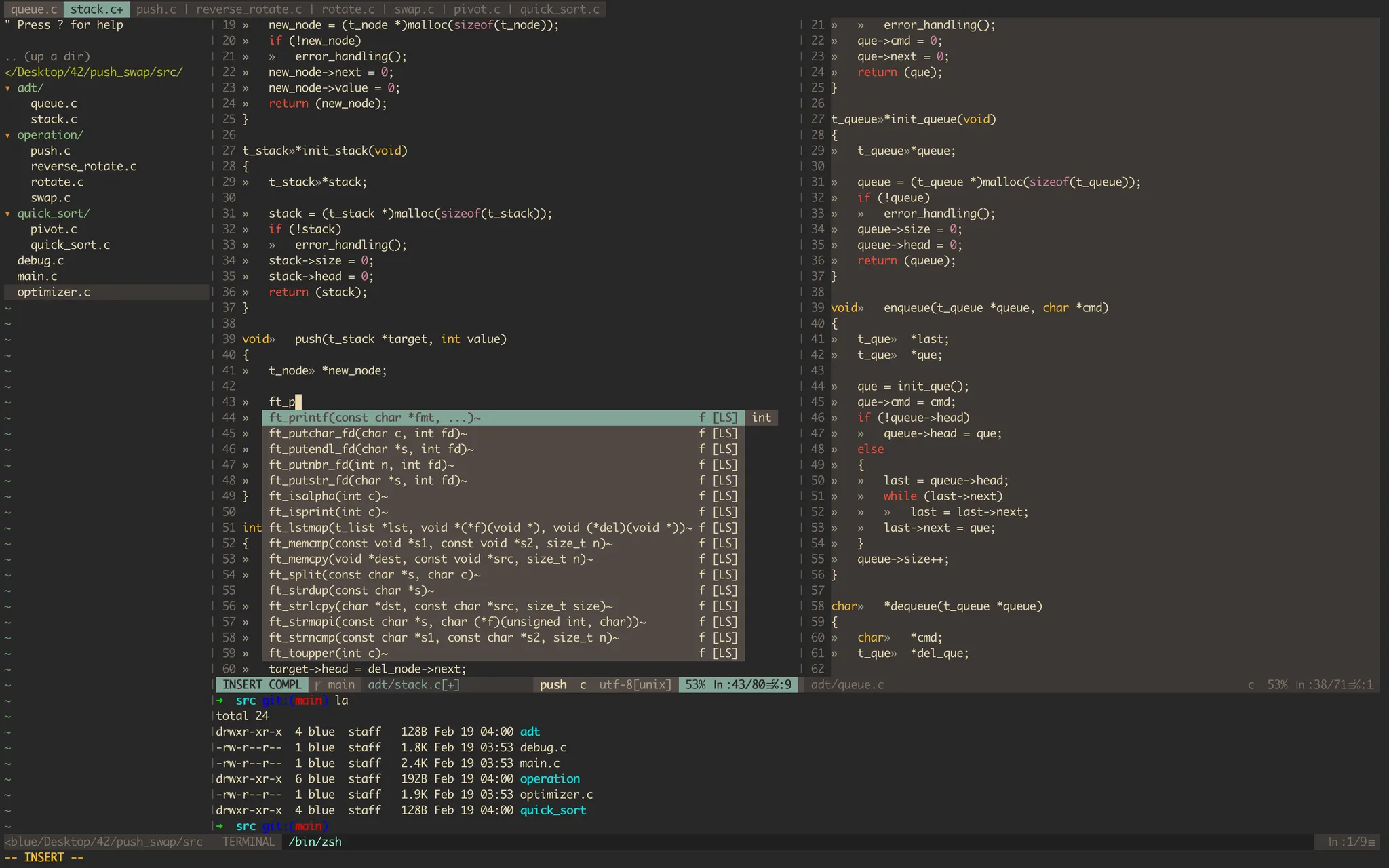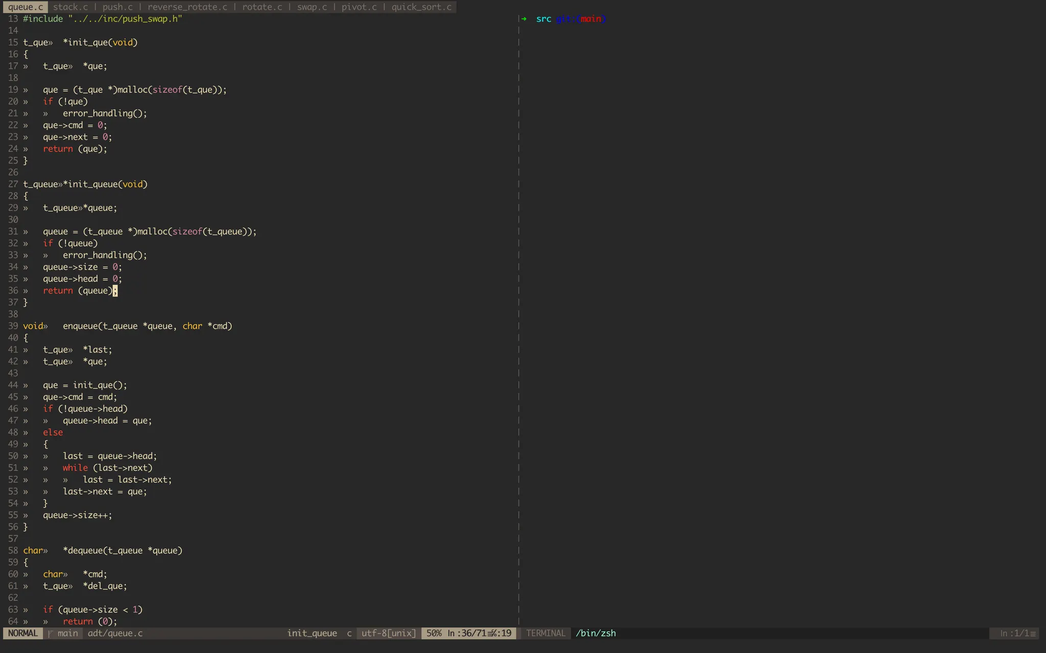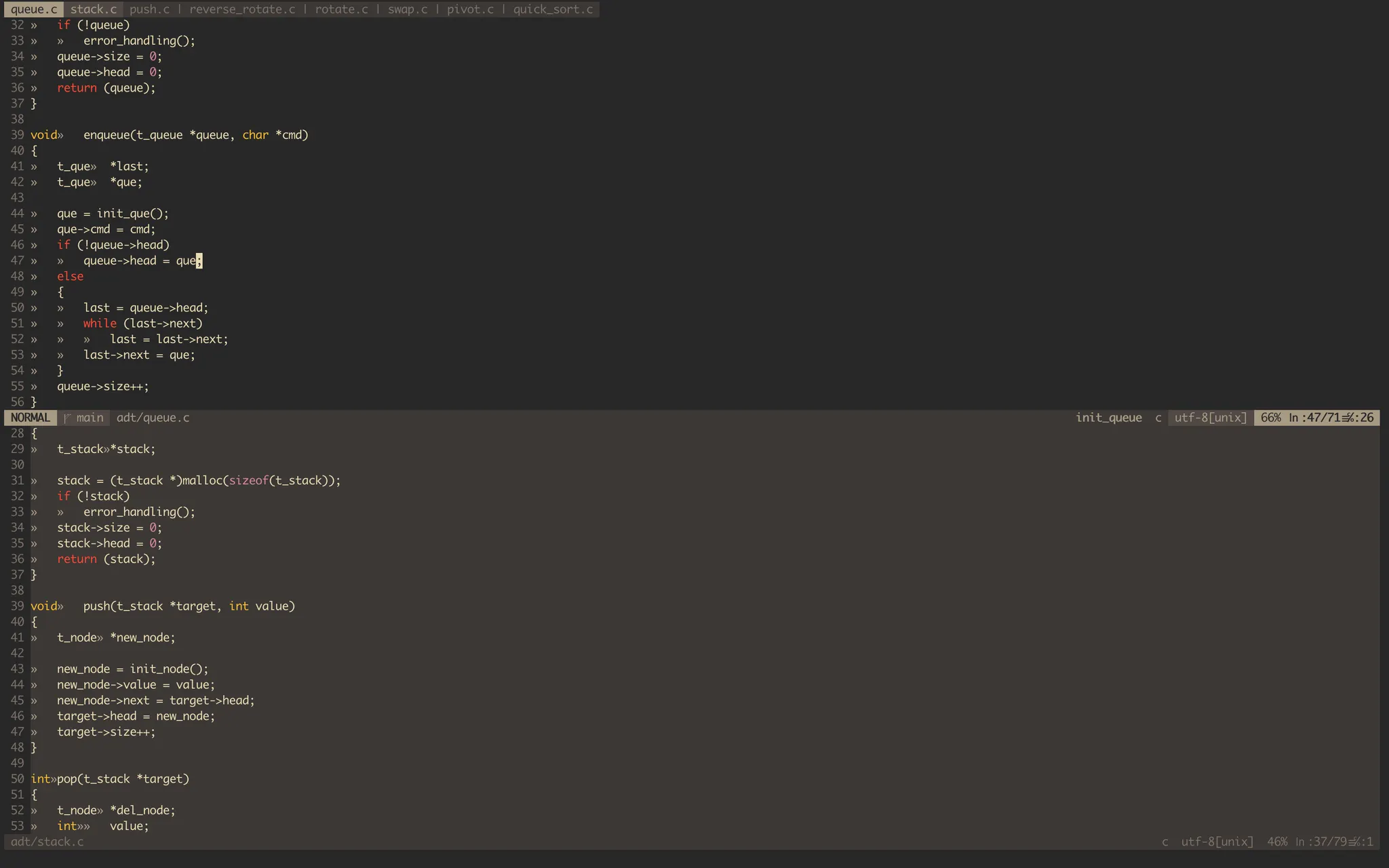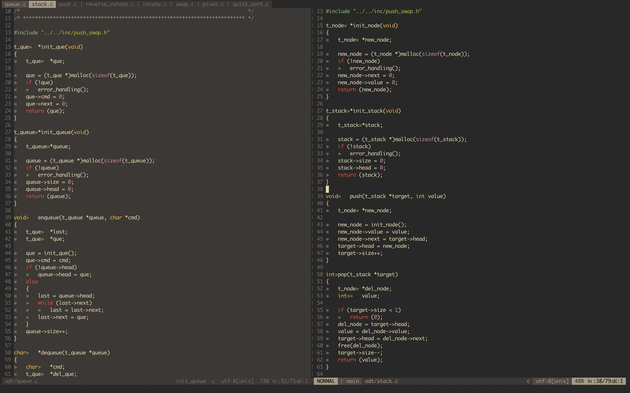 Ctrl + w + v or :vs or :vertical split → 수직 분할