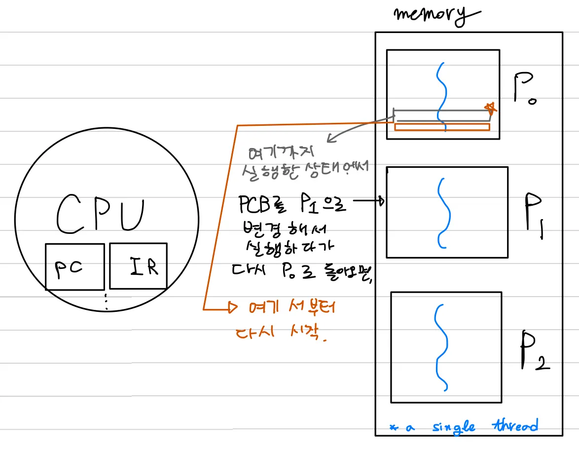 —> 프로그램 카운터나 CPU 레지스터를 문맥(context)라고 한다! ⇒ 뒤에서 더 다룰 내용!