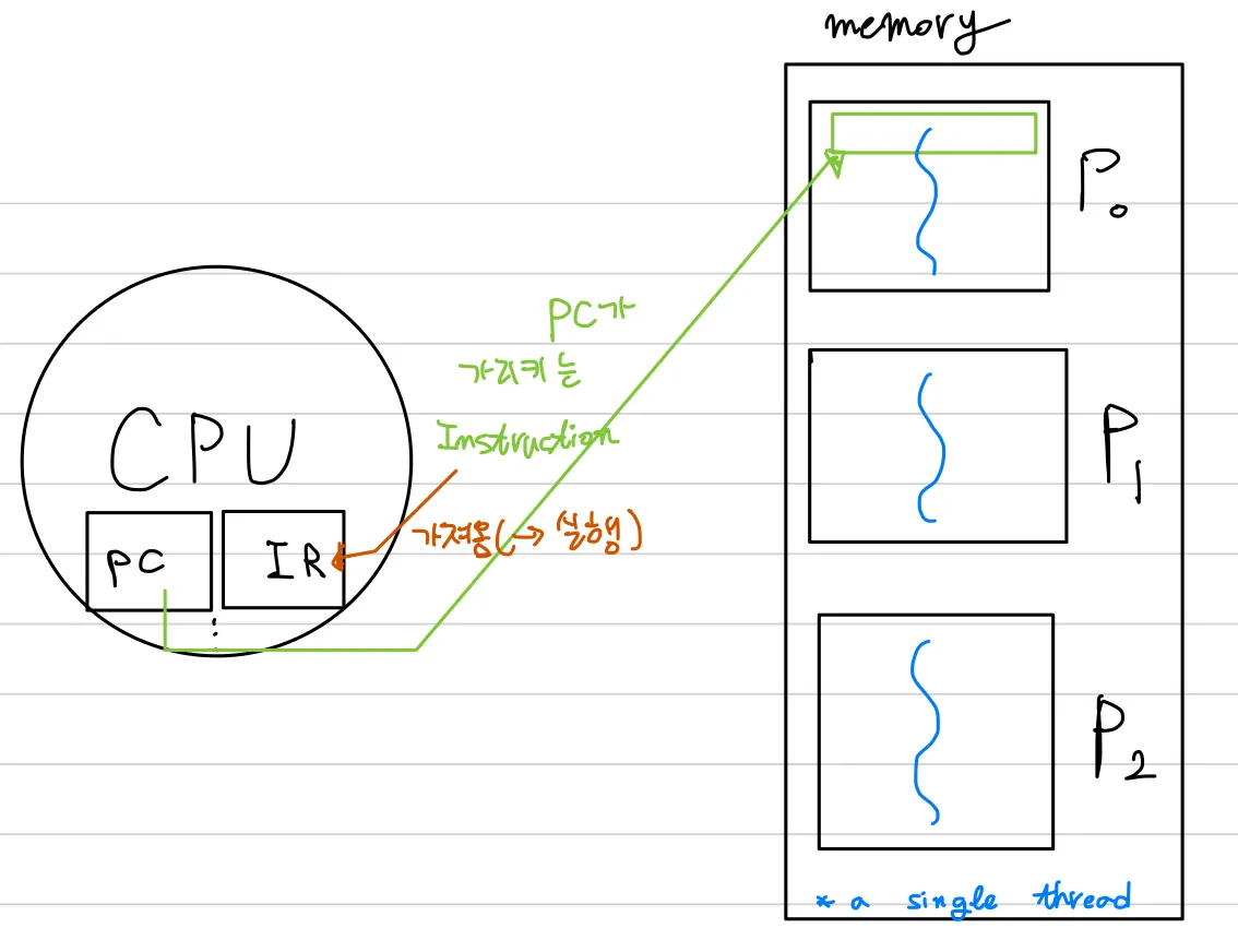 프로세스는 기본적으로 single thread of execution을 한다!