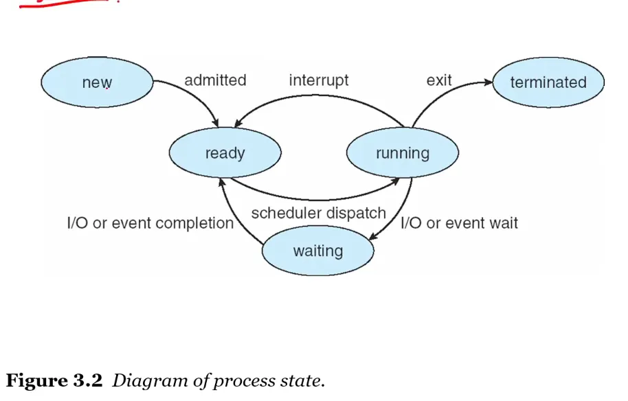 메모리에 로드되었다고 해서 다 실행되는 건 아니다. 이 프로세스가 cpu를 점유 해야하는데, 여러개의 프로세스가 time sharing을 통해 동시에 cpu를 공유하고 있다. cpu를 점유했다면 이 프로세스는 실행 될것이고, 실행되면서 다른 file들이나 입출력 device들을 관리 할 수 있다.