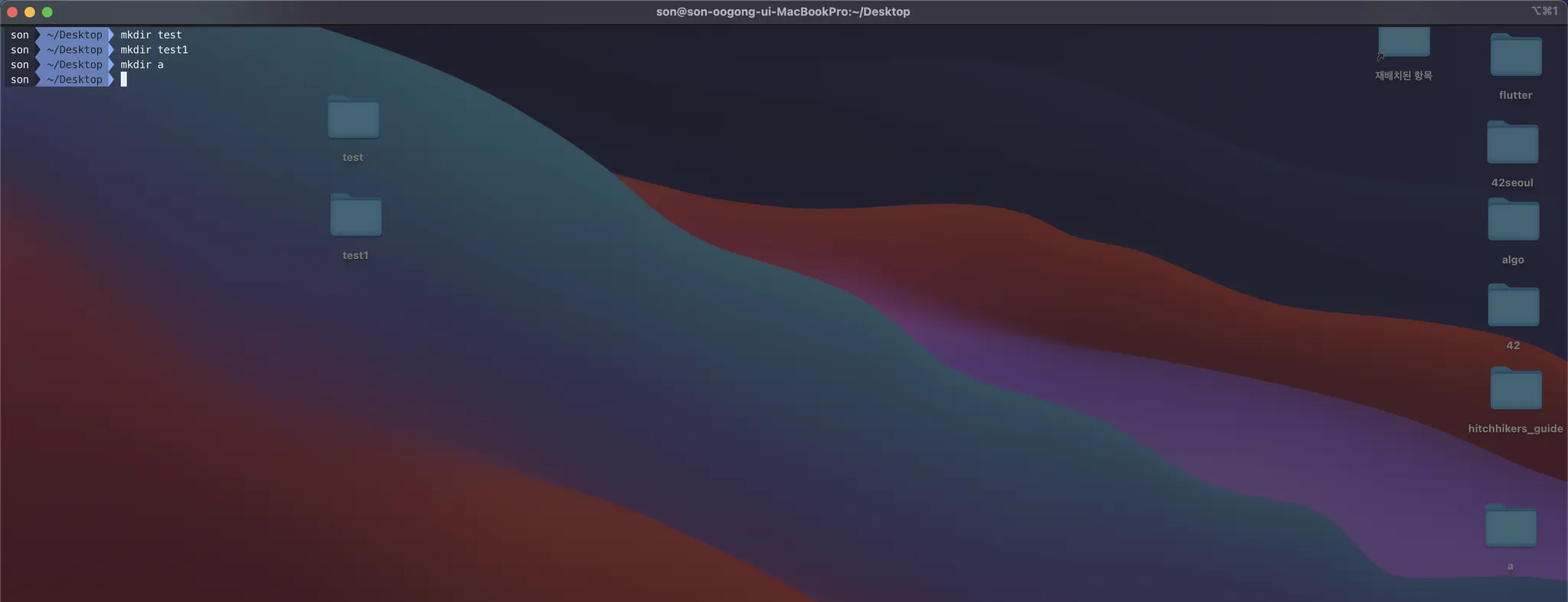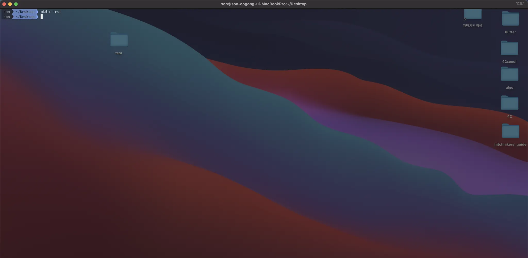 나는 test라는 폴더를 만들었고, 평소와는 다르게 오른쪽에 예쁘게 쌓이는게 아니라 이상한 위치에 폴더가 생기길래 뭐지 싶었지만 중요한 것이 아니기에 무시했다