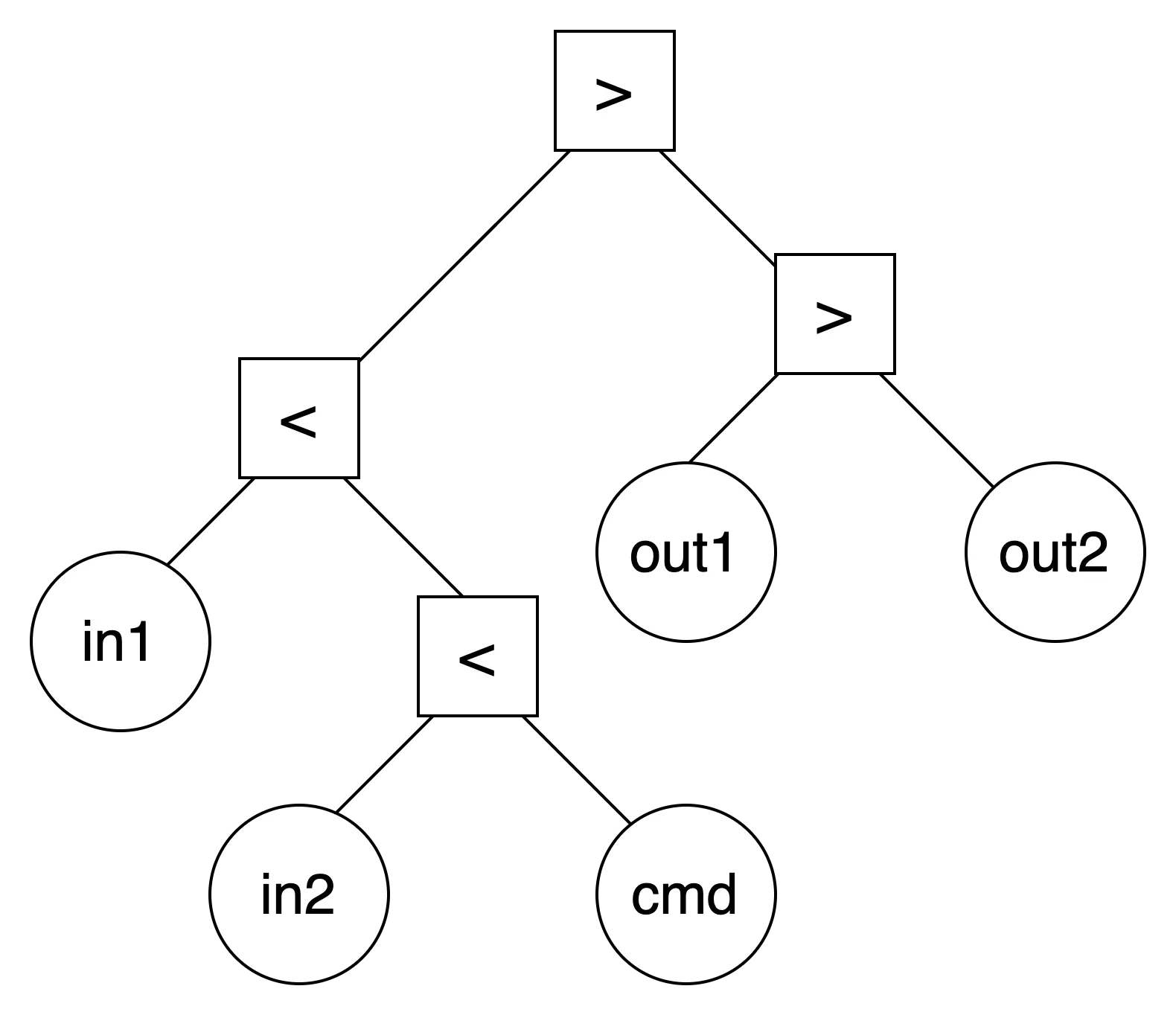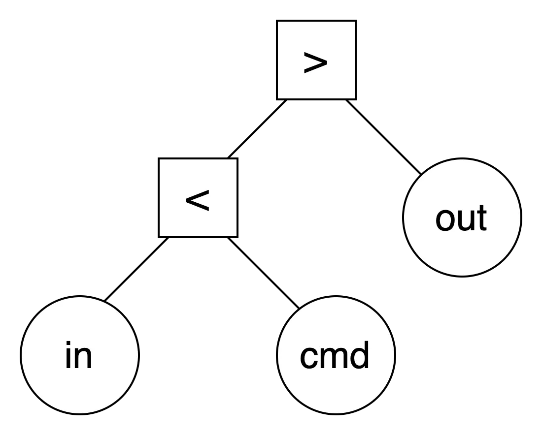 기본적으로 input에 대한 redirection을 수행하는 <와 << 연산자는 전위 연산자이다. 이들은 피연산자로 단 하나의 단어를 파일 이름으로 삼는다. 예외적으로 output에 대한 redirection을 수행하는 >와 >>또한 제한적으로 전위연산자로 이해될 수 있다. 이들 또한 마찬가지로 하나의 단어를 파일 이름으로 하여 피연산자로 갖는다.