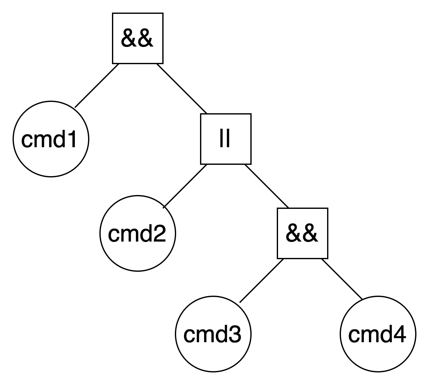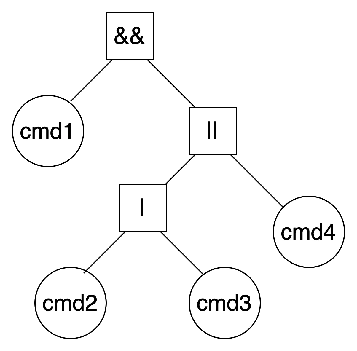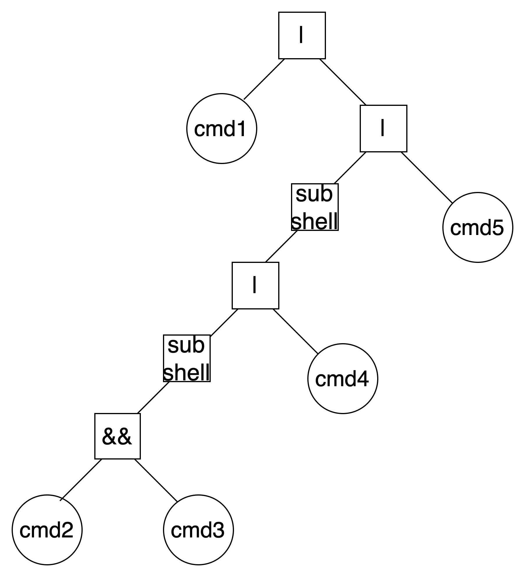 subshell 처리가 없었다면 cmd1과 cmd2, cmd3와 cmd4가 각각 pipe의 피연산자로 묶였을 것이다. 이는 파싱 과정에서 pipe의 BP와 &&의 BP가 subshell에 의해서 역전되었음을 의미한다.