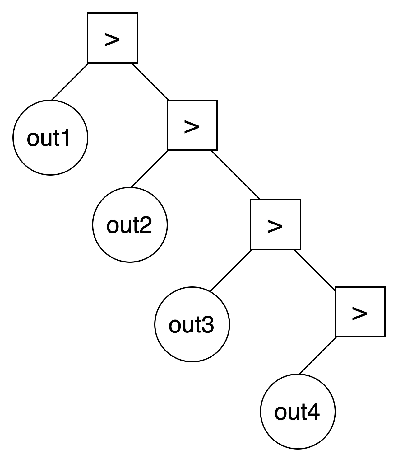 앞서 정의된 우선순위에 따라, &&의 RBP보다 ||의 LBP가 높으며, |의 RBP가 ||의 LBP보다 높다. 따라서 위와 같은 파싱 결과를 얻을 수 있다.