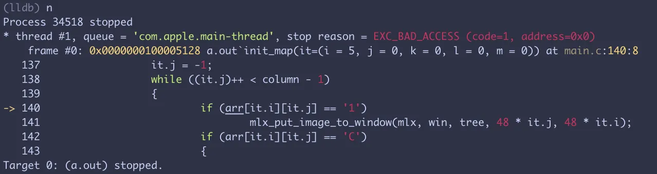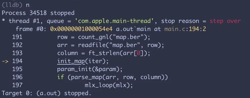 breakpoint 앞까지는 원래대로 실행시키고, breakpoint(이 경우, file.c 파일의 50번째 줄) 부터 한 줄 씩 검사